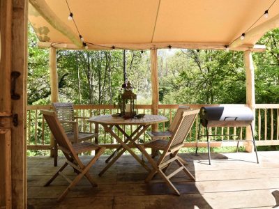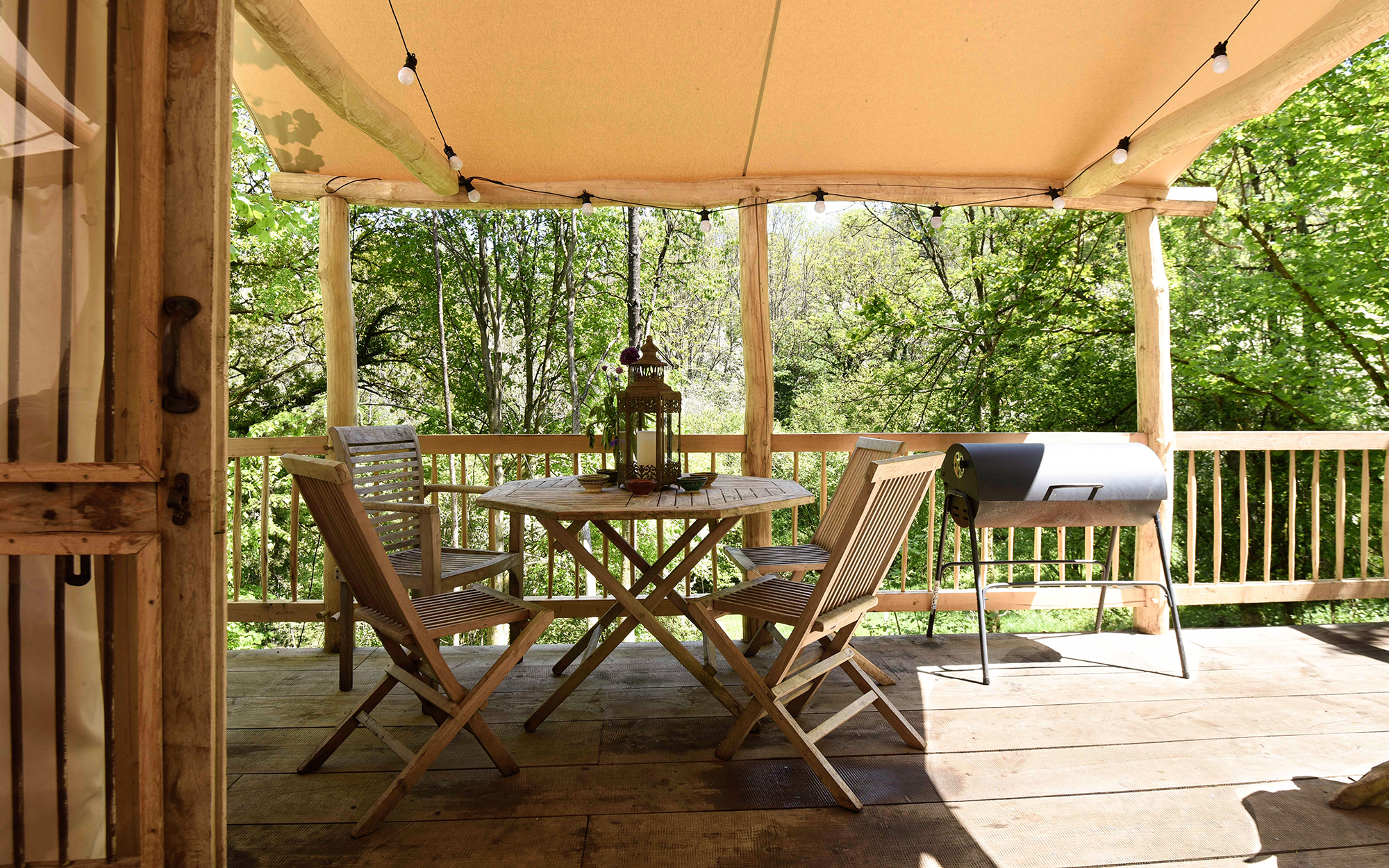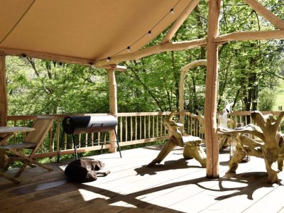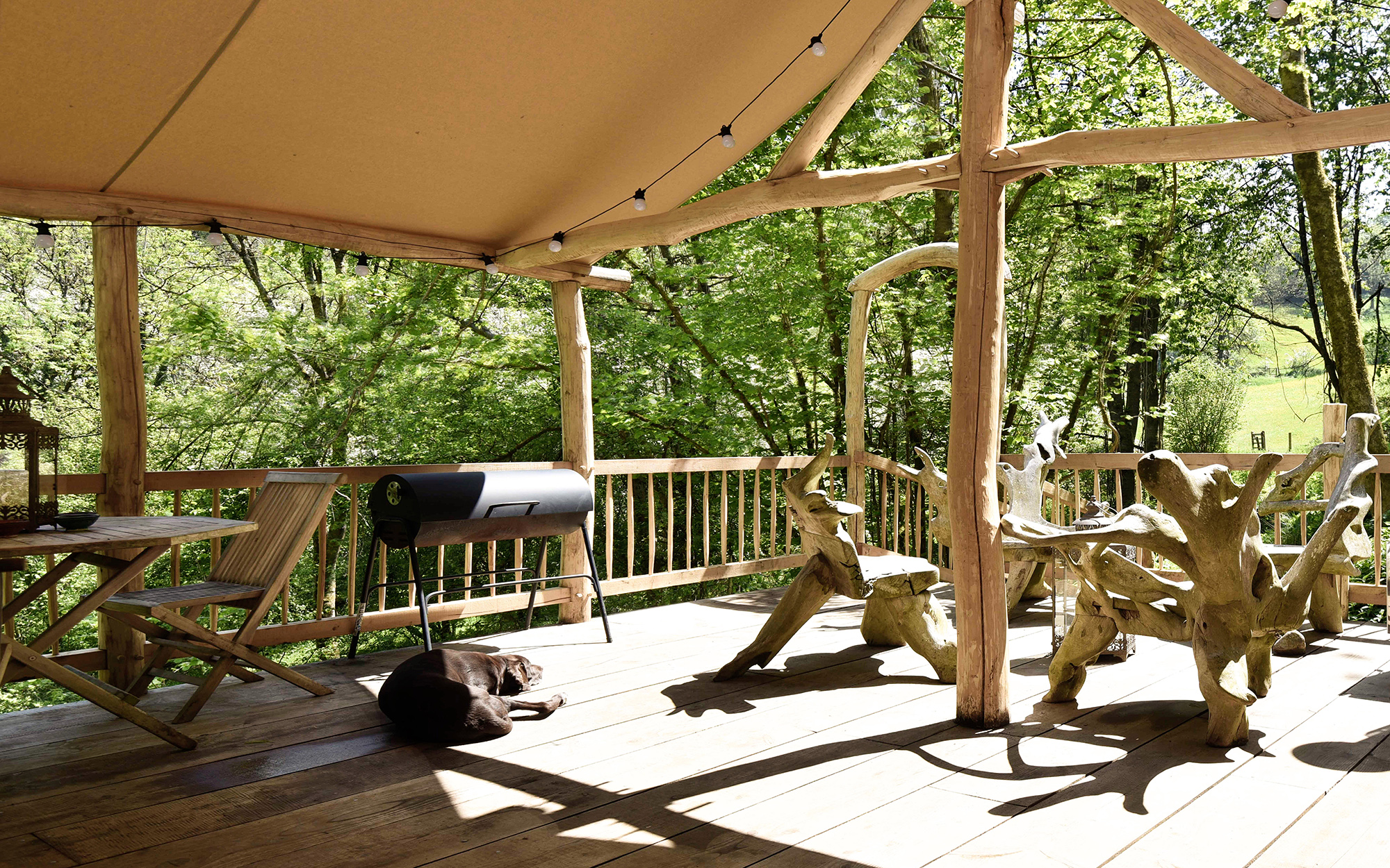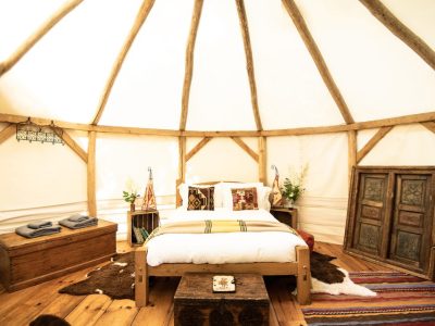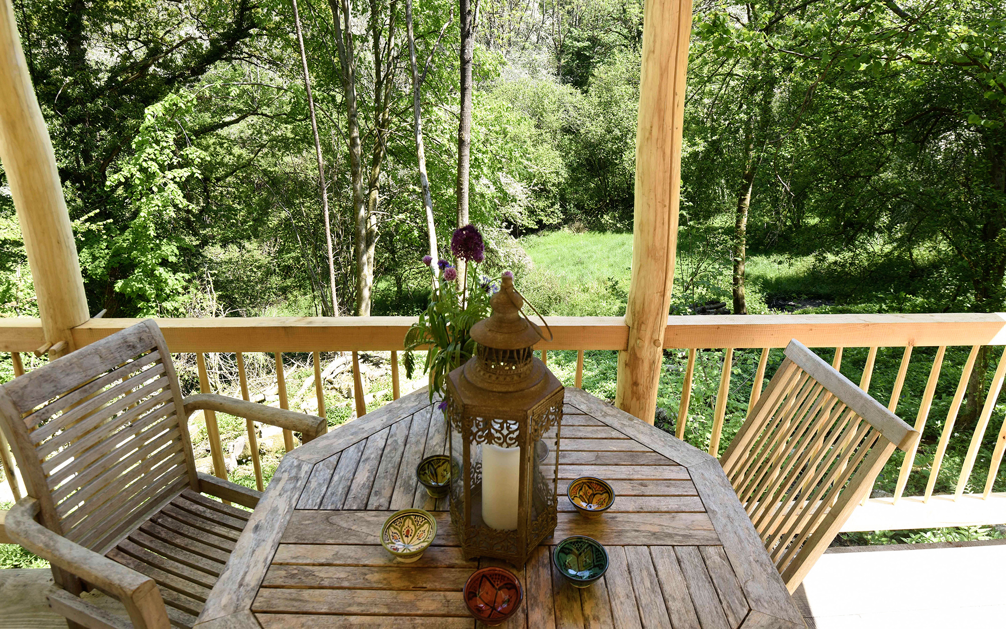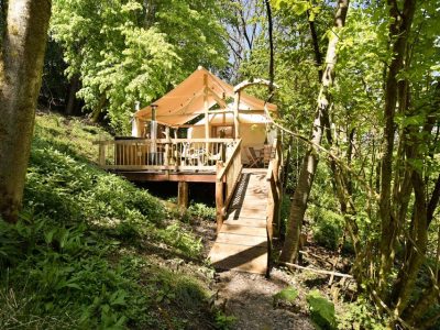 Perched on a platform jutting out into the trees at the end of the woods, the Far Out Yurt is a world of its own, far from the crowds, secluded and serene.