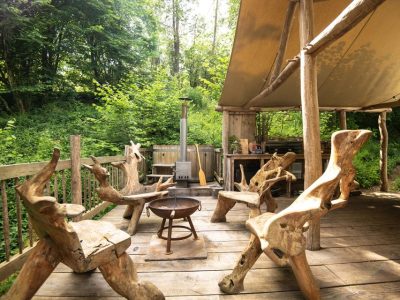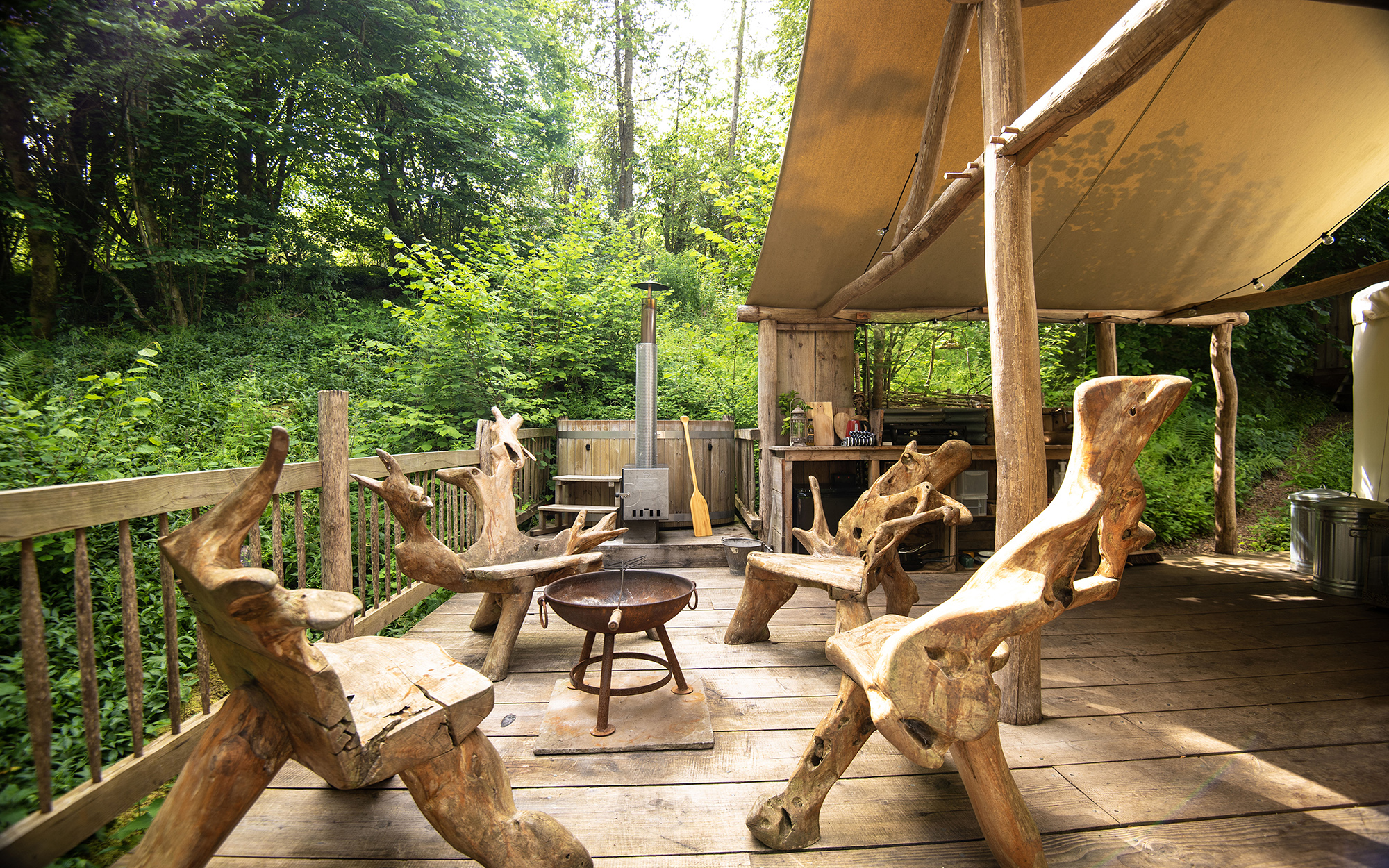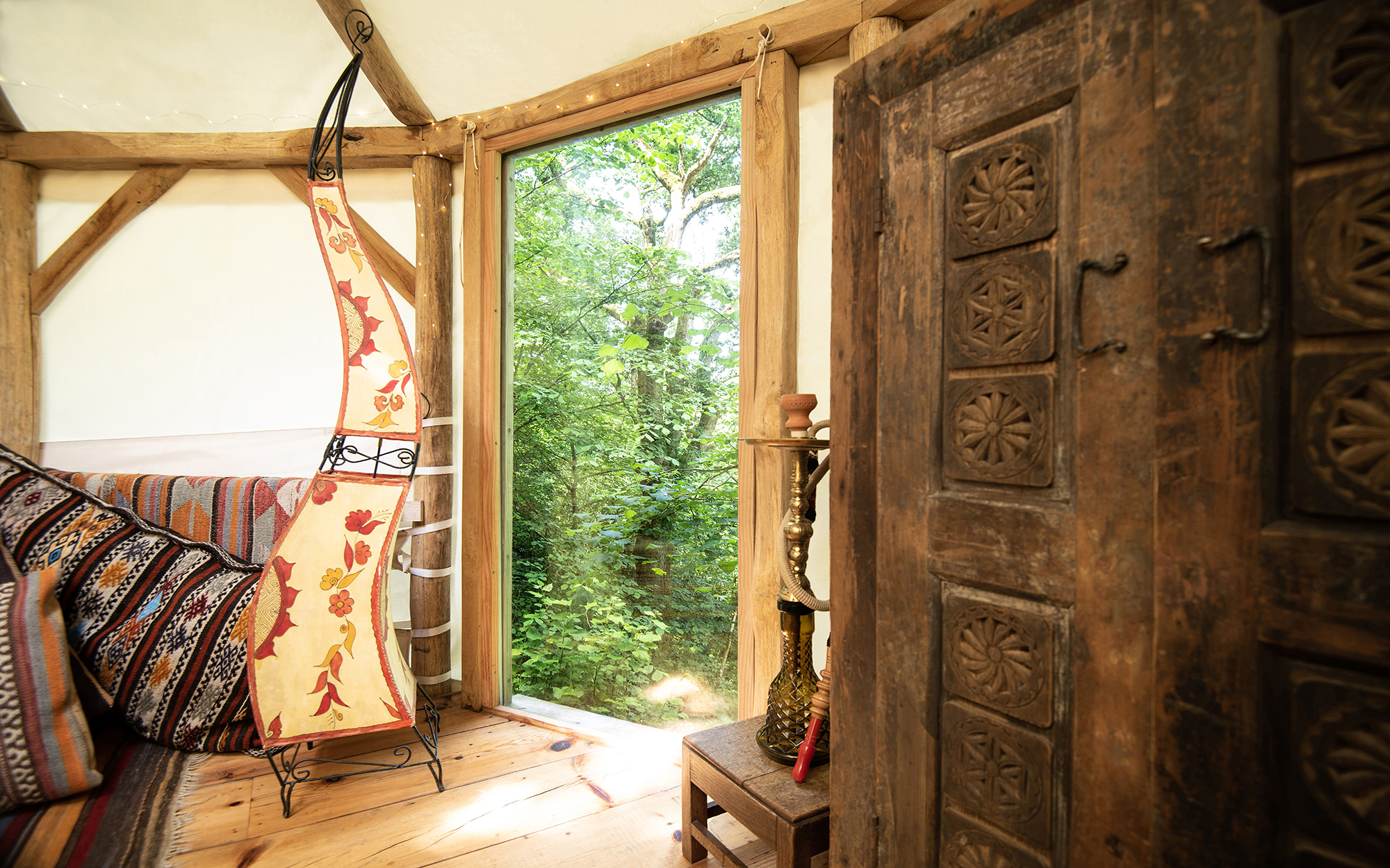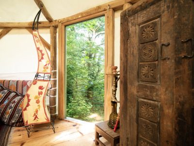 The Far Out Yurt was born in the woods and carved from the trees, hewn from the very woodland in which it stands