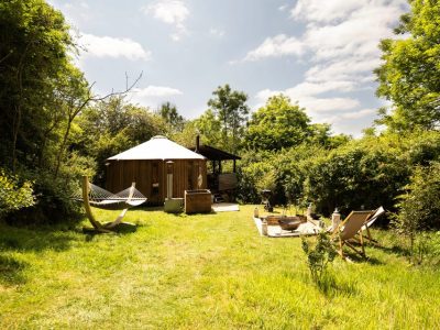 With windows on seven of its eight sides the Zen Den offers views around the clock, a chance to watch the surrounding woodland, to follow the light. But it isn’t all stripped back minimalism: there’s a wood-burning stove to keep you cosy, a giant bean bag to crash out on and a supremely comfortable floating bed, with freshly-pressed Egyptian cotton bedding.