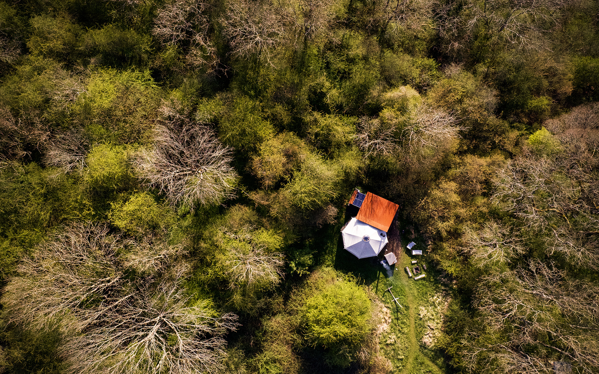 With windows on seven of its eight sides the Zen Den offers views around the clock, a chance to watch the surrounding woodland, to follow the light. But it isn’t all stripped back minimalism: there’s a wood-burning stove to keep you cosy, a giant bean bag to crash out on and a supremely comfortable floating bed, with freshly-pressed Egyptian cotton bedding.